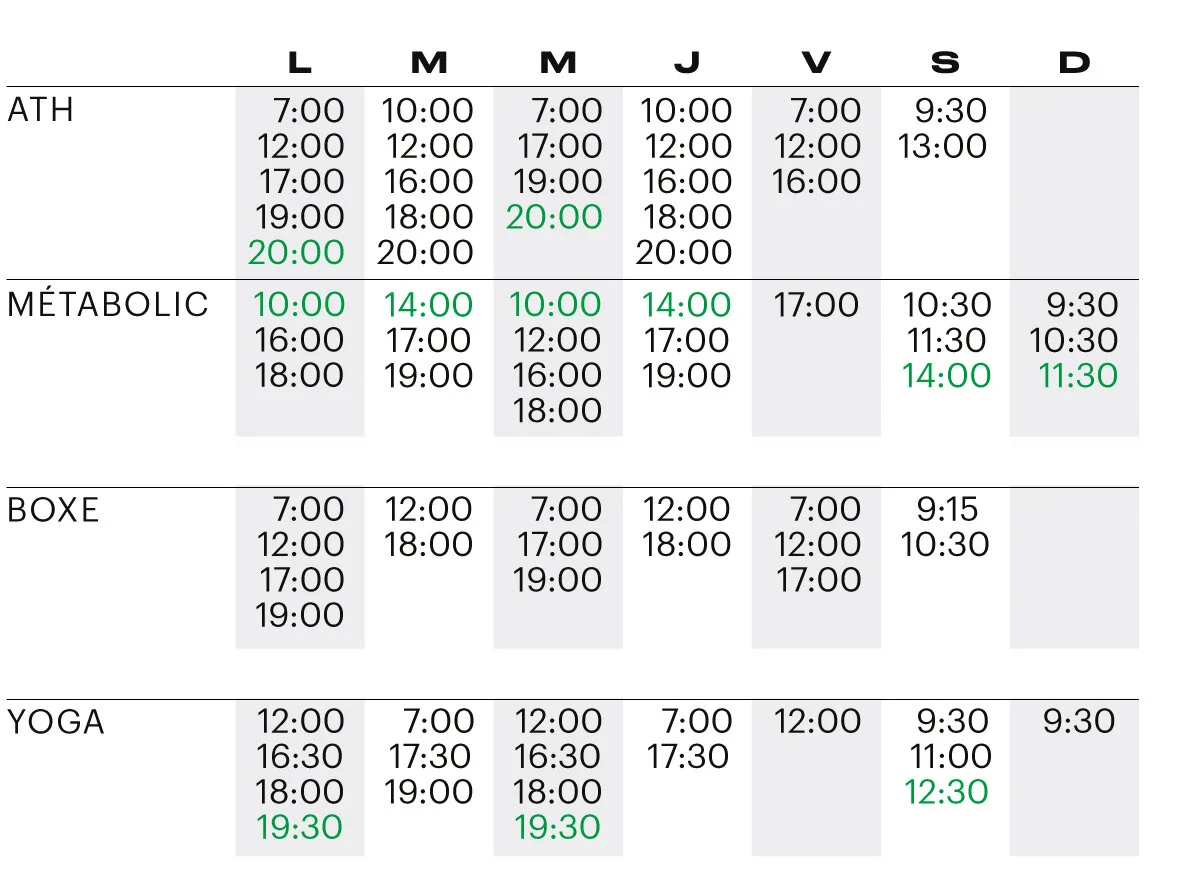 Pour le mois d’octobre, nous ajoutons dès demain six séances Métabolic et deux séances ATH à l’horaire hebdo. Nous pourrons ainsi mieux répartir l’achalandage et contribuer à l’effort collectif.