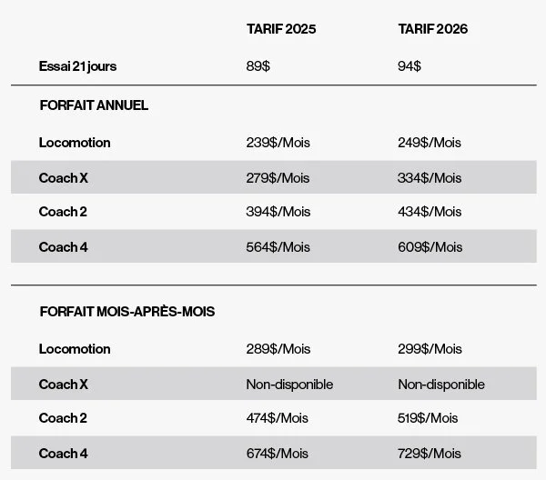 L’accès au tarif 2025, à la suite d’un essai 21 jours, est possible si, au terme de l’essai, l’utilisateur s’inscrit à un forfait annuel ou mois-après-mois ;
